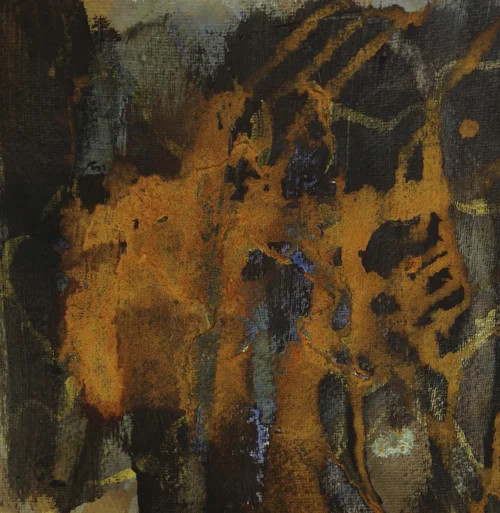 Inks, bronze paint and patina on paper